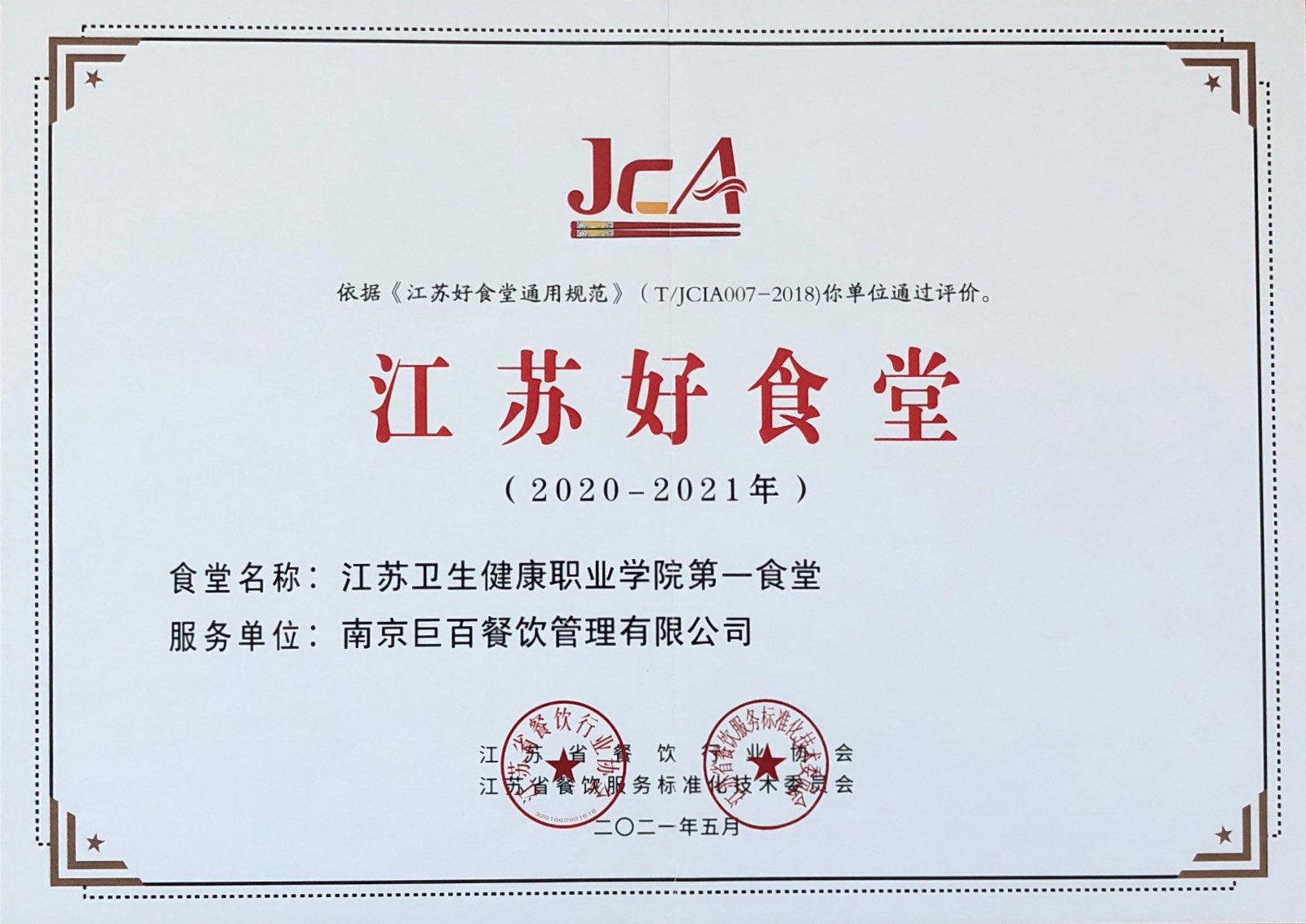 2021-2022江蘇優(yōu)秀團餐